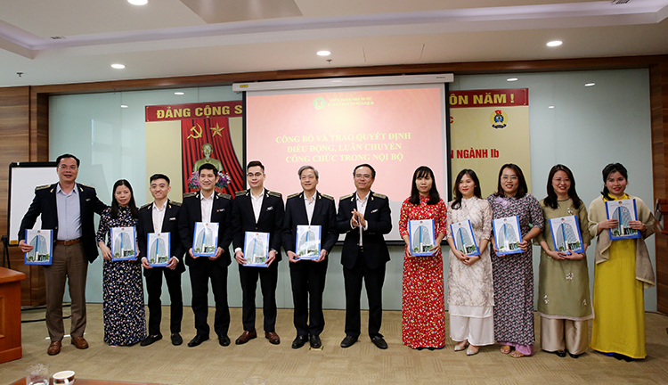 Kiểm toán trưởng KTNN chuyên ngành Ib trao Quyết định luân chuyển cho các cán bộ, công chức trong đơn vị