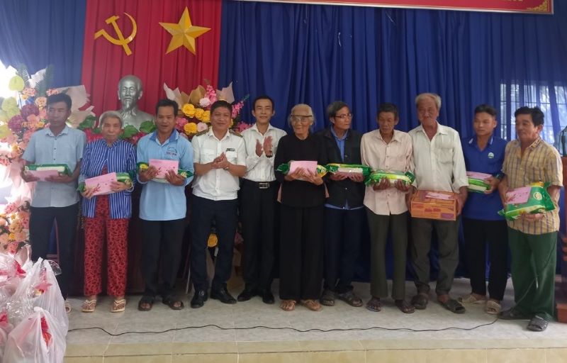Công đoàn KTNN khu vực V trao quà Tết tại xã Thạnh Phú. Ảnh: Mỹ Giang