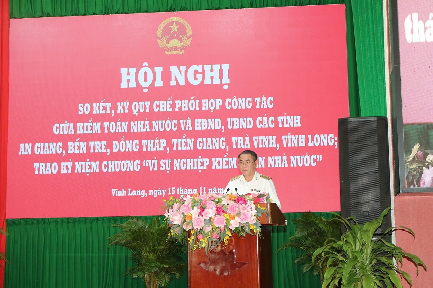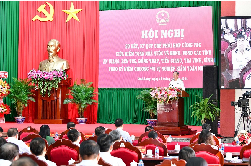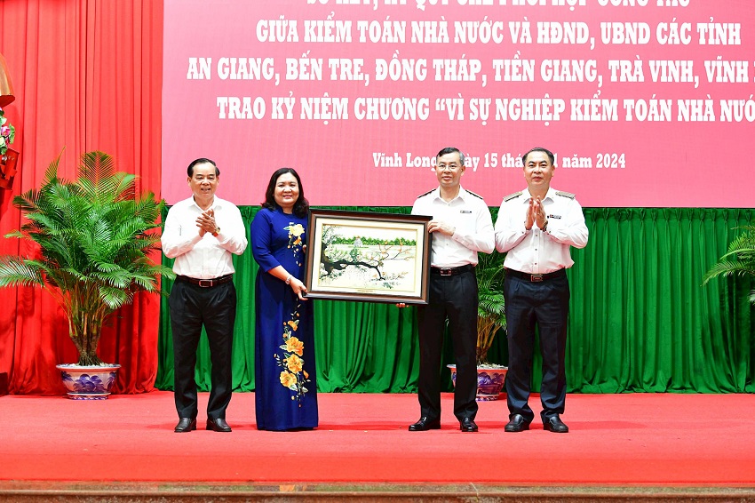 Nhân Hội nghị này, KTNN cũng trao tặng Kỷ niệm chương “Vì sự nghiệp KTNN” cho các đồng chí là lãnh đạo tỉnh và lãnh đạo sở, ban, ngành thuộc 6 tỉnh An Giang, Bến Tre, Đồng Tháp, Tiền Giang, Trà Vinh, Vĩnh Long đã có nhiều công lao đóng góp cho sự nghiệp xây dựng và phát triển KTNN.