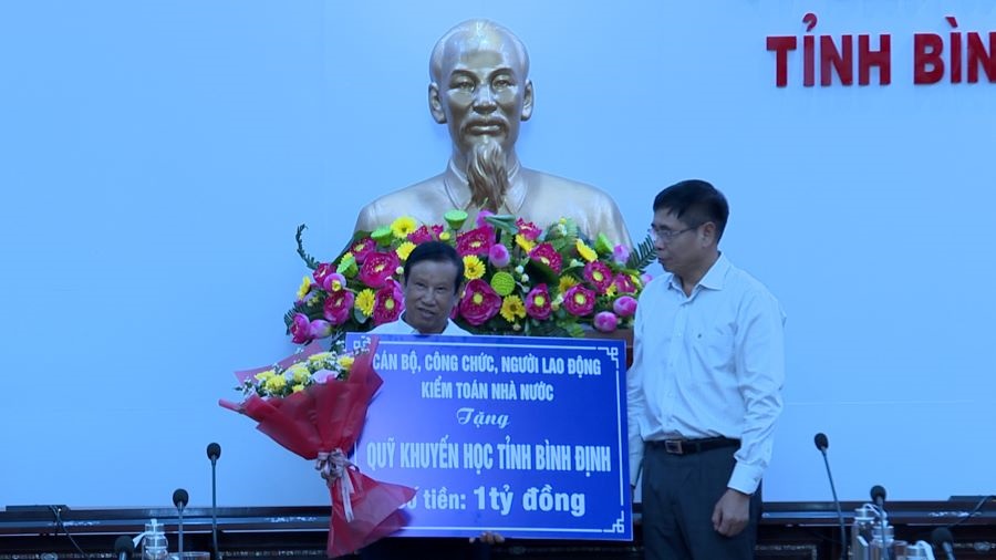 Lãnh đạo KTNN trao tặng quà đến Quỹ Khuyến học và Quỹ Vì người nghèo tỉnh Bình Định