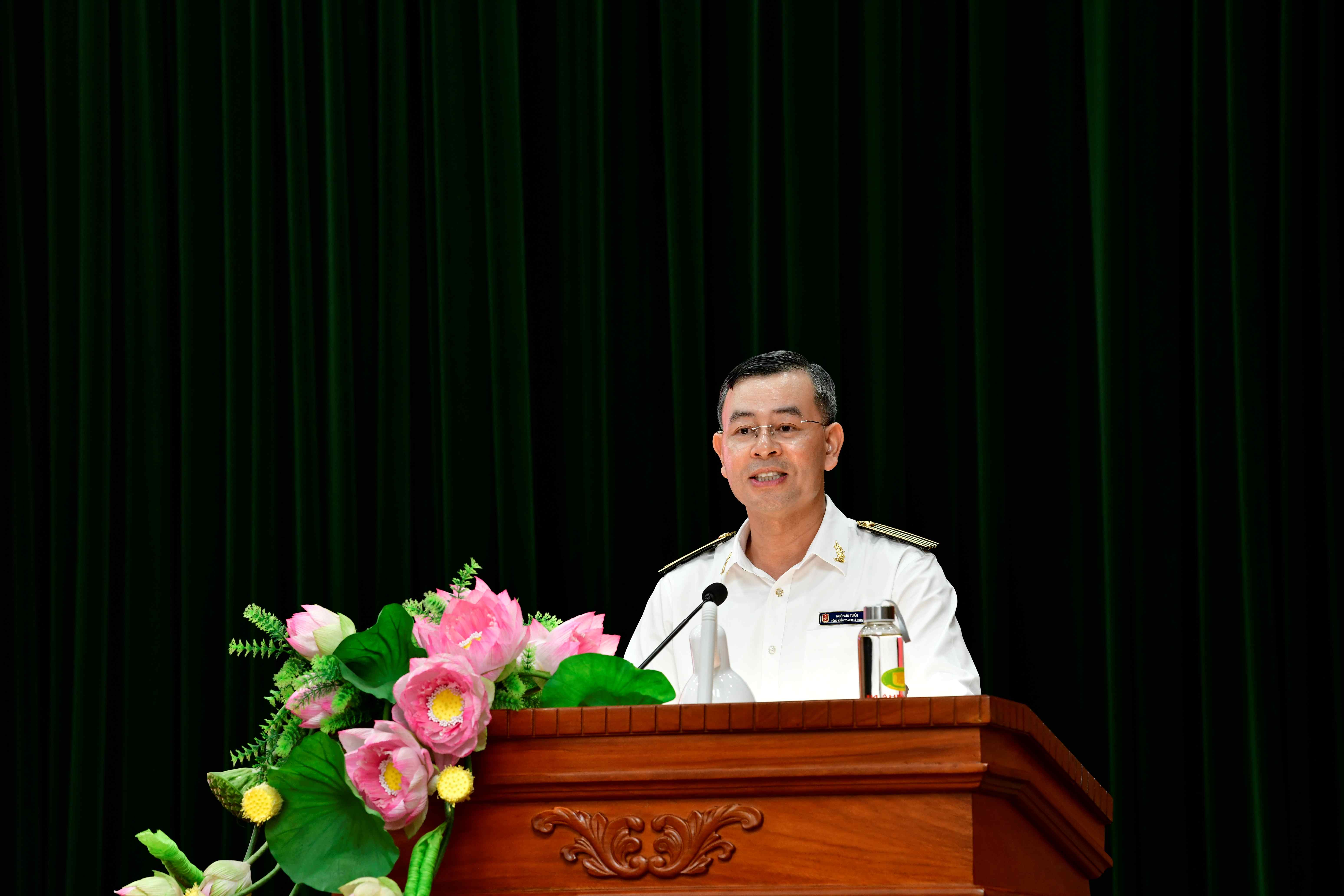Tổng Kiểm toán nhà nước Ngô Văn Tuấn - Khối trưởng Khối thi đua phát biểu tại Hội nghị