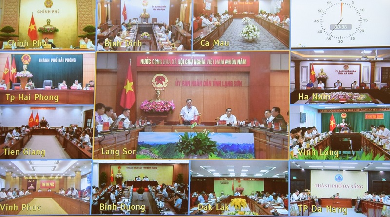 Phiên họp được kết nối trực tuyến tới trụ sở UBND các tỉnh, thành