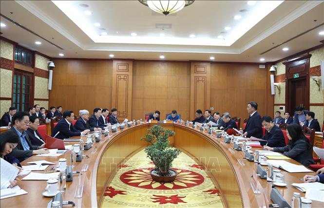 Đến nay, các cơ quan, Ban Đảng, đơn vị sự nghiệp của Đảng; Mặt trận Tổ quốc Việt Nam và các tổ chức chính trị-xã hội ở Trung ương đã triển khai nghiêm túc việc tổng kết Nghị quyết 18, xây dựng đề án, phương án sắp xếp tổ chức bộ máy - Ảnh: TTXVN