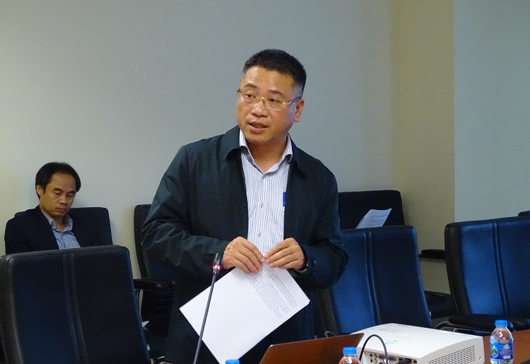 Ông Trần Trí Thành - Phó Kiểm toán trưởng KTNN chuyên ngành IV giới thiệu, thông tin về Quy định 131. Ảnh: D.THIỆN
