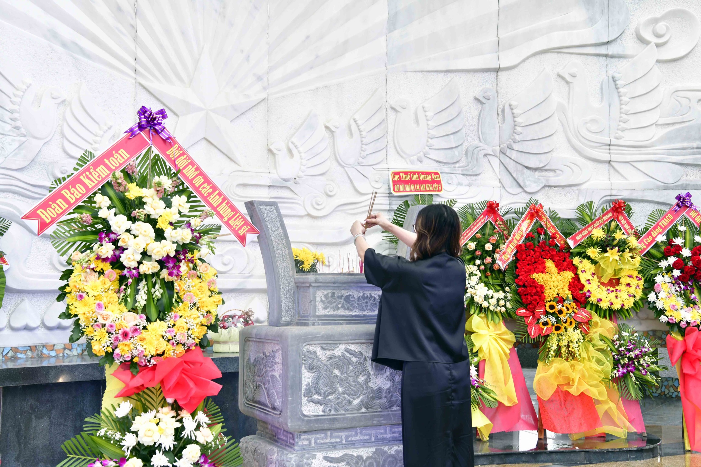 Tổng Biên tập Báo Kiểm toán Nguyễn Thị Quỳnh Minh dâng hương tại Tượng đài Liệt sỹ tỉnh Quảng Nam