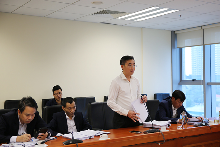 Kiểm toán trưởng KTNN chuyên ngành III Lê Tùng Lâm báo cáo tại buổi làm việc