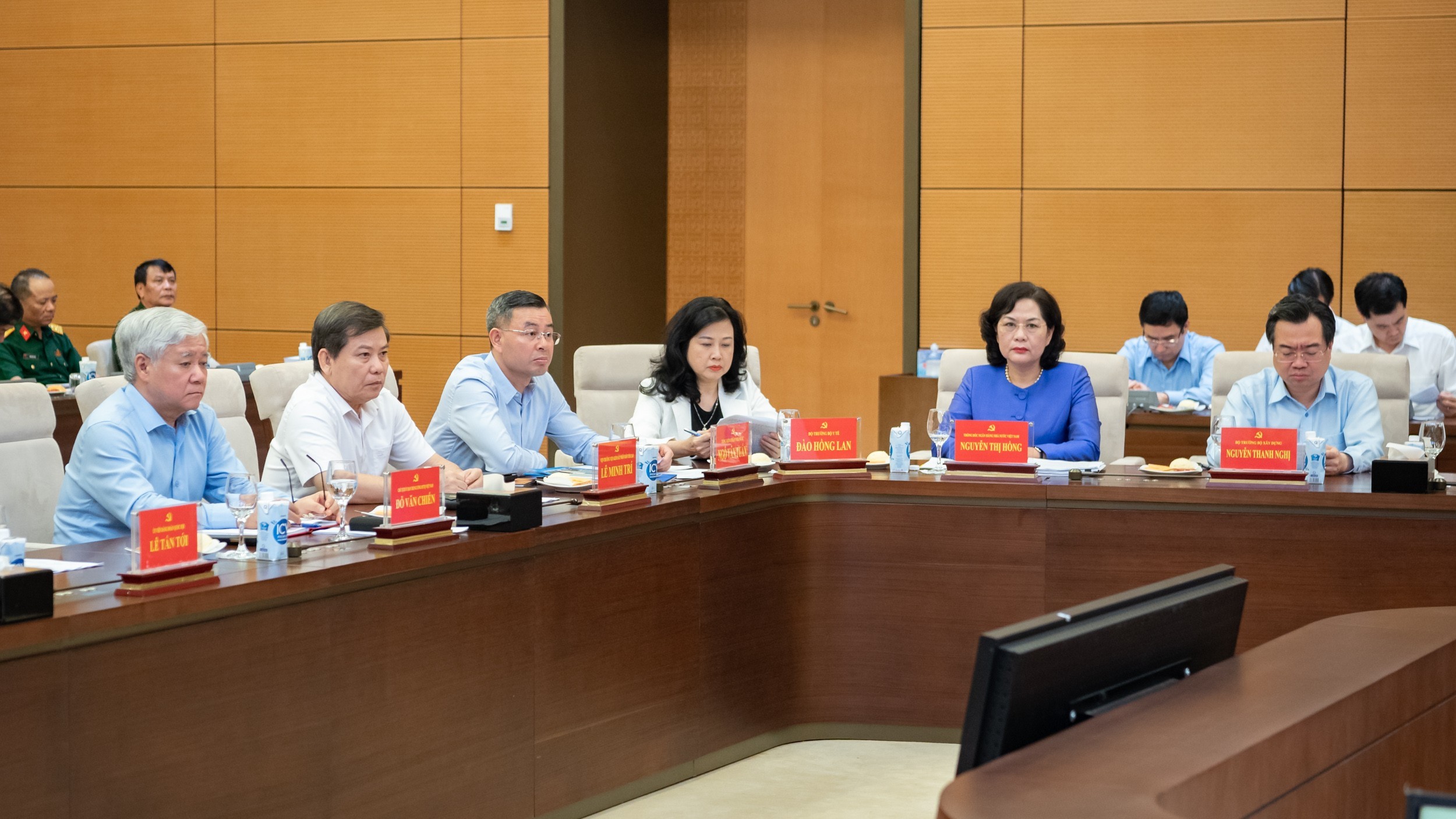 Dự hội nghị phía Đảng đoàn Quốc hội có Ủy viên Bộ Chính trị, Phó Bí thư Đảng đoàn Quốc hội, Phó Chủ tịch Thường trực Quốc hội Trần Thanh Mẫn; các Ủy viên Trung ương Đảng, Ủy viên Đảng đoàn Quốc hội: Phó Chủ tịch Quốc hội Nguyễn Khắc Định, Phó Chủ tịch Quốc hội Nguyễn Đức Hải, Phó Chủ tịch Quốc hội Trần Quang Phương; Tổng Thư ký Quốc hội, Chủ nhiệm Văn phòng Quốc hội Bùi Văn Cường cùng Chủ tịch Hội đồng Dân tộc và Chủ nhiệm các Ủy ban của Quốc hội, các Ban thuộc Ủy ban Thường vụ Quốc hội; đại diện lãnh đạo Văn phòng Quốc hội.