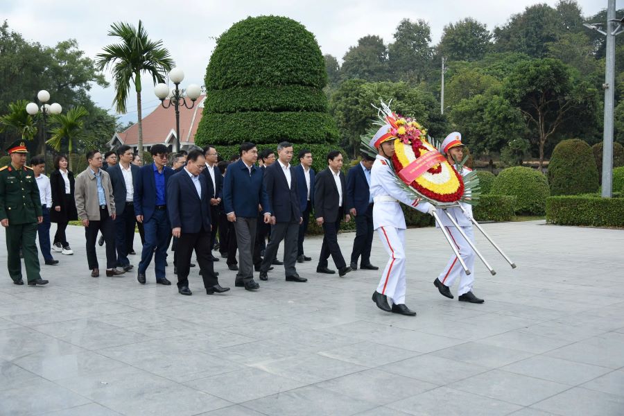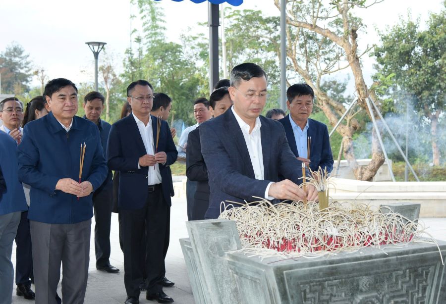Trước đó, Đoàn công tác đã cùng các đồng chí trong Ban Thường vụ Tỉnh ủy, lãnh đạo UBND tỉnh Điện Biên và đại diện một số sở, ban, ngành của tỉnh đã dâng hương tại Đền thờ liệt sỹ tại Chiến trường Điện Biên Phủ và Nghĩa trang liệt sỹ A1.