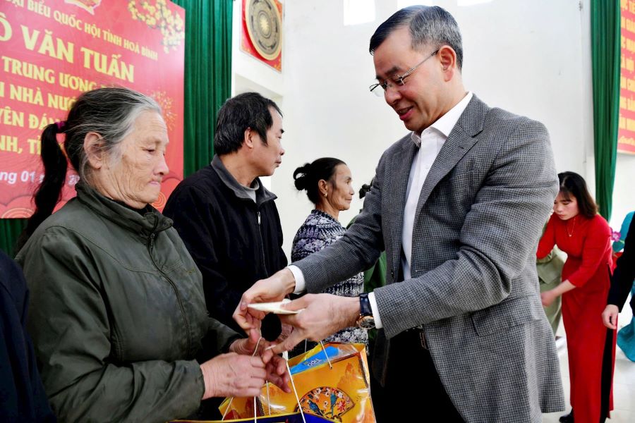 Đến thăm và chúc tết bà con tại Nhà văn hóa phường Kỳ Sơn, thành phố Hòa Bình, Tổng Kiểm toán nhà nước Ngô Văn Tuấn cho biết, nhân dịp năm mới và đón xuân Ất Tỵ, Đoàn đại biểu Quốc hội tỉnh Hoà Bình cùng các đơn vị, các nhà tài trợ, Công đoàn, Đoàn Thanh niên KTNN và một số đơn vị trực thuộc KTNN về thành phố Hòa Bình thăm và chúc tết bà con. Tổng Kiểm toán nhà nước gửi lời chúc tốt đẹp nhất tới tất cả bà con cùng gia đình một năm mới sức khỏe, hạnh phúc, an khang thịnh vượng.