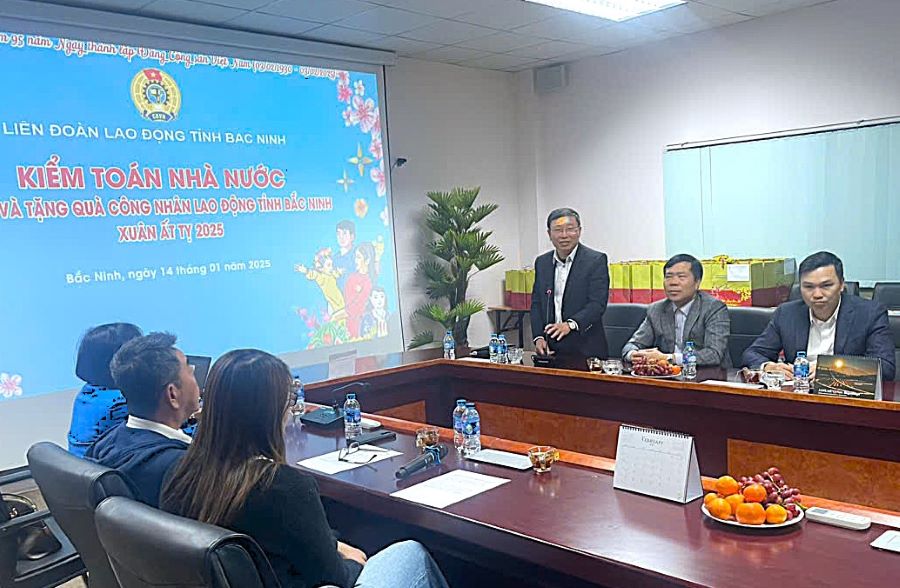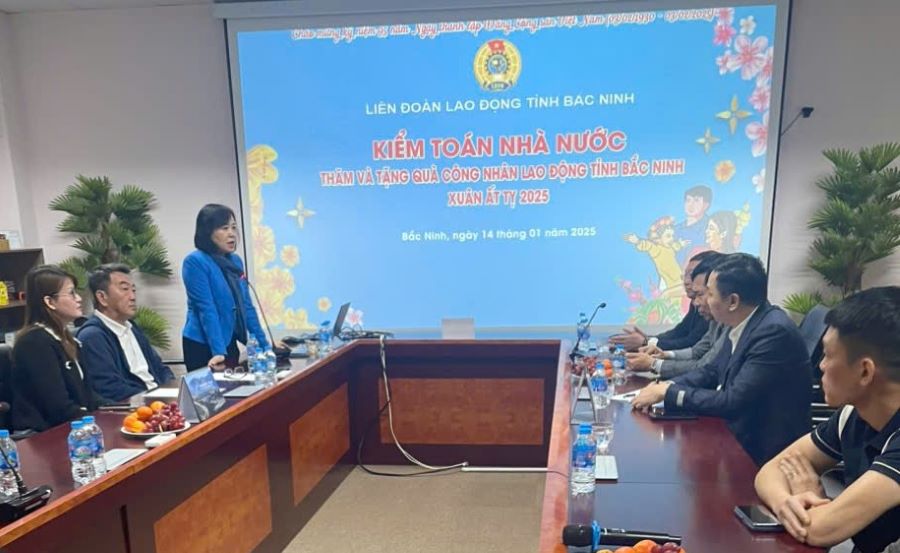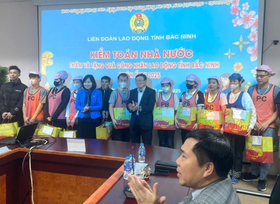 Nhân dịp này, Kiểm toán trưởng Ngô Minh Kiểm đã chuyển lời chúc tết của Tổng Kiểm toán nhà nước Ngô Văn Tuấn tới toàn thể cán bộ, công nhân Khu công nghiệp lời chúc mừng năm mới đón Xuân Ất Tỵ dồi dào sức khỏe và hạnh phúc. Cùng với đó, gửi lời cảm ơn trân trọng đến Liên đoàn lao động tỉnh Bắc Ninh, Lãnh đạo Khu công nghiệp VSIP đã tổ chức buổi trao quà cho các công nhân có hoàn cảnh khó khăn tại Khu công nghiệp.