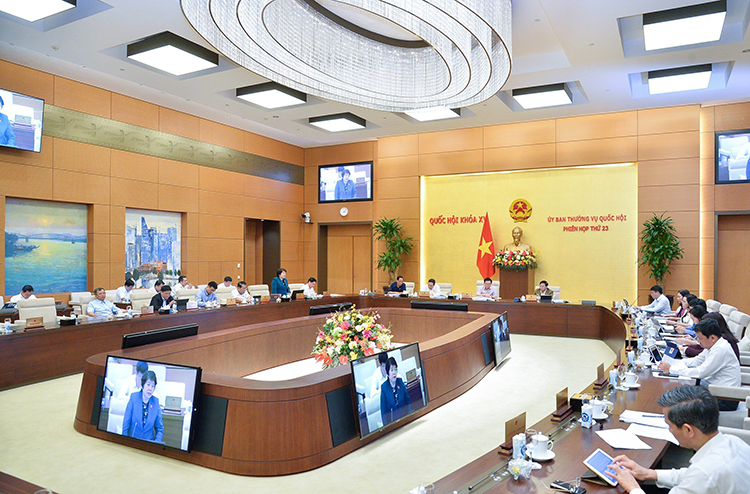 (sav.gov.vn) - Tiếp tục Chương trình Phiên họp thứ 23 của Uỷ ban Thường vụ Quốc hội (UBTVQH), chiều 9/5/2023, tại Nhà Quốc hội, dưới sự chủ trì của Ủy viên Bộ Chính trị, Chủ tịch Quốc hội Vương Đình Huệ, UBTVQH cho ý kiến về dự án Luật Các tổ chức tín dụng (TCTD) (sửa đổi).