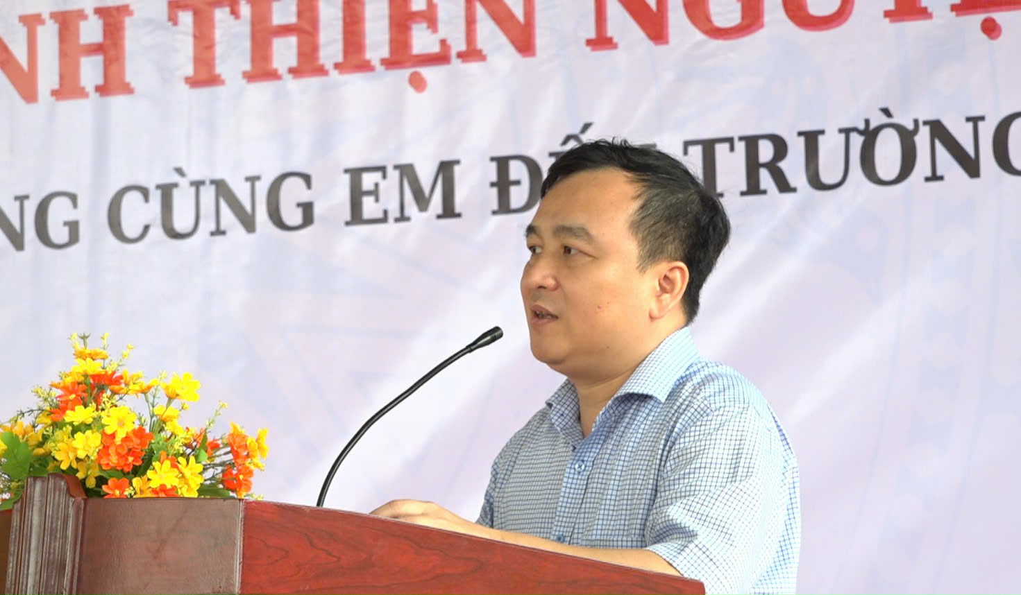 Đồng chí Phạm Thanh Sơn - Phó Kiểm toán trưởng, Chủ tịch Công đoàn KTNN chuyên ngành IV phát biểu tại điểm thiện nguyện tại huyện Yên Sơn