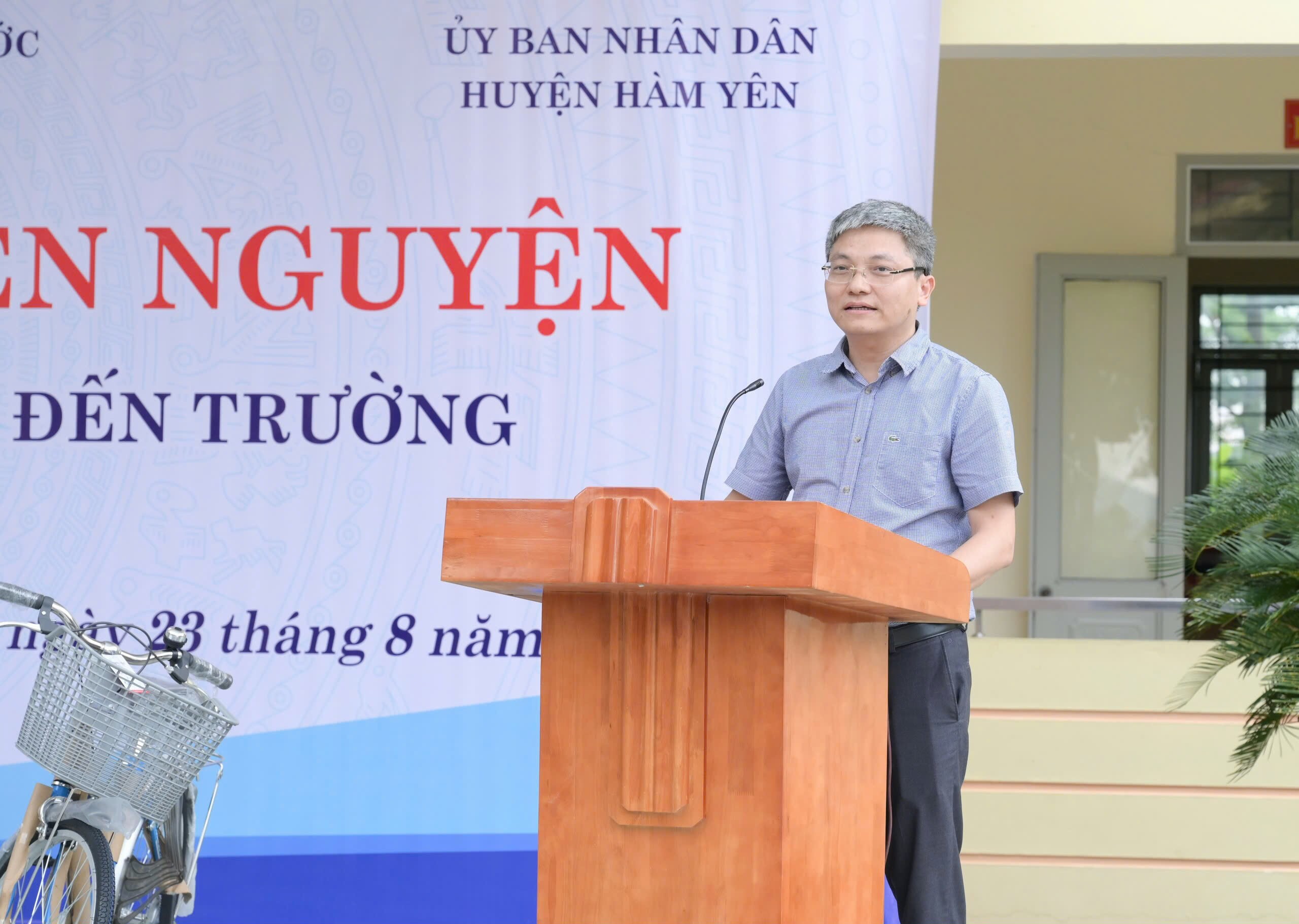 Đoàn công tác trao tặng xe đạp cho 60 em học sinh tại 02 trường THCS Phù Lưu và THCS Minh Dân thuộc huyện Hàm Yên