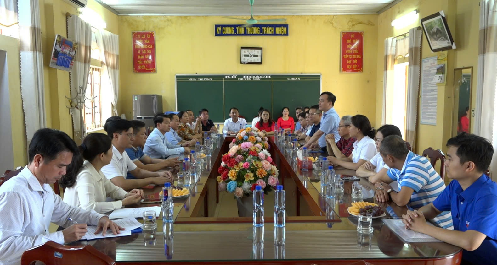 Đồng chí Hoàng Linh - Phó Vụ trưởng, chủ tịch công đoàn Vụ Tổng hợp phát biểu tại điểm trường THCS Thiện Kế, huyện Sơn Dương